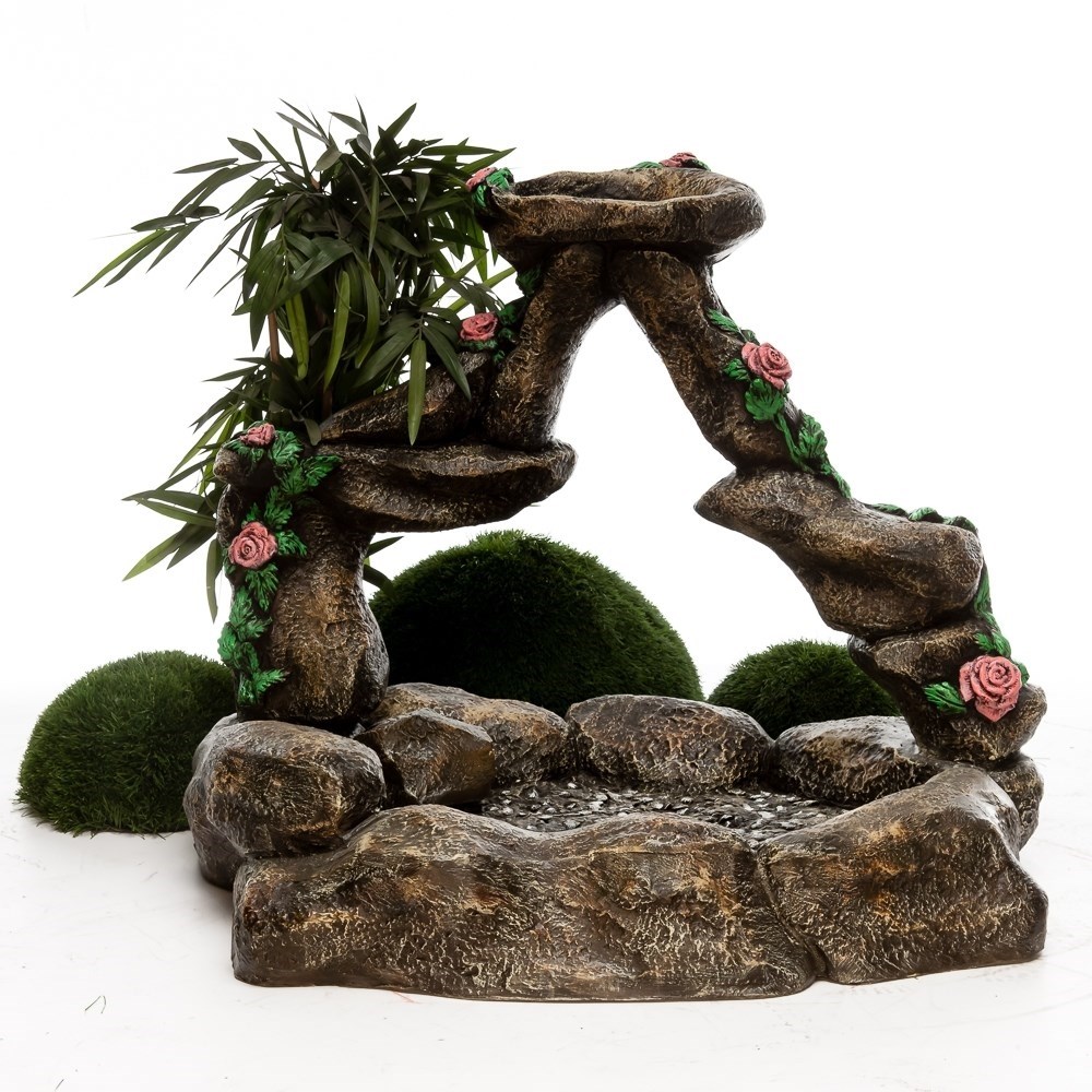 - Не требует дополнительных аксессуаров для установки. Лишь подключение к электропитанию. Вода наливается в специальный резервуар и циркулирует с помощью помпы. Фонтан укомплектован электрическим водяным насосом.