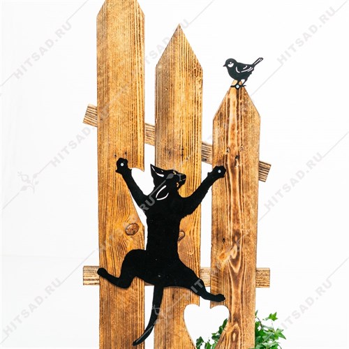 Садовый настенный металлический декор "Кот с птичкой" арт. 801-309