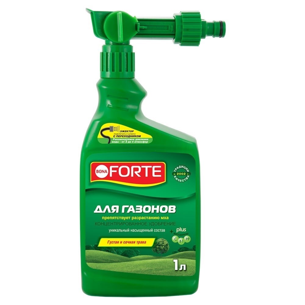 Удобрение для газонов, от пожелтения травы и роста мха, концентрированное с эжектором, БОНА ФОРТЕ 1л с доставкой по СПБ и Москве