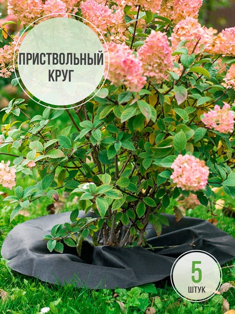 Укрывной материал для мульчирования от сорняков, приствольный круг диаметр 80 см HITSAD H202-02, 5шт с доставкой по СПБ и Москве